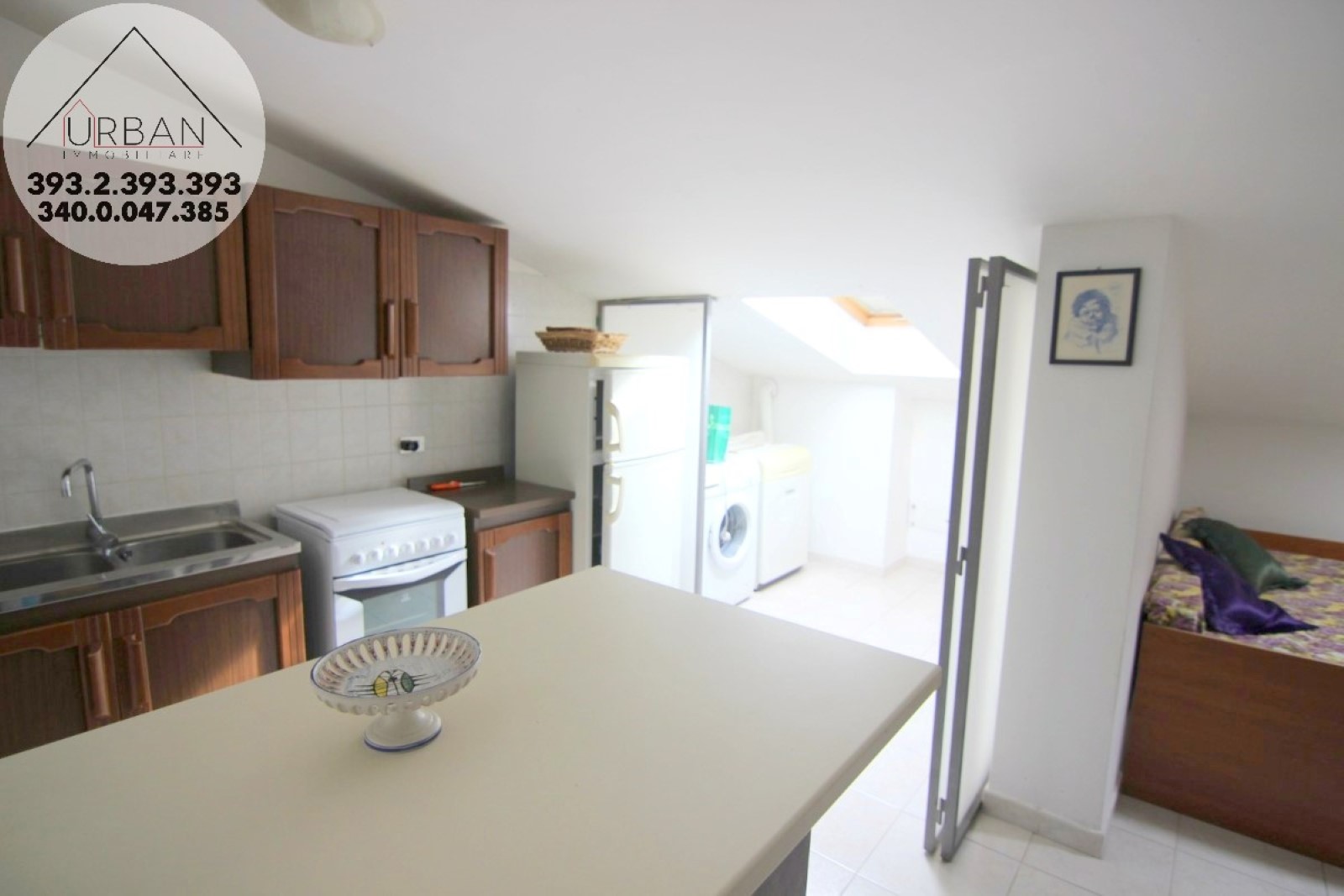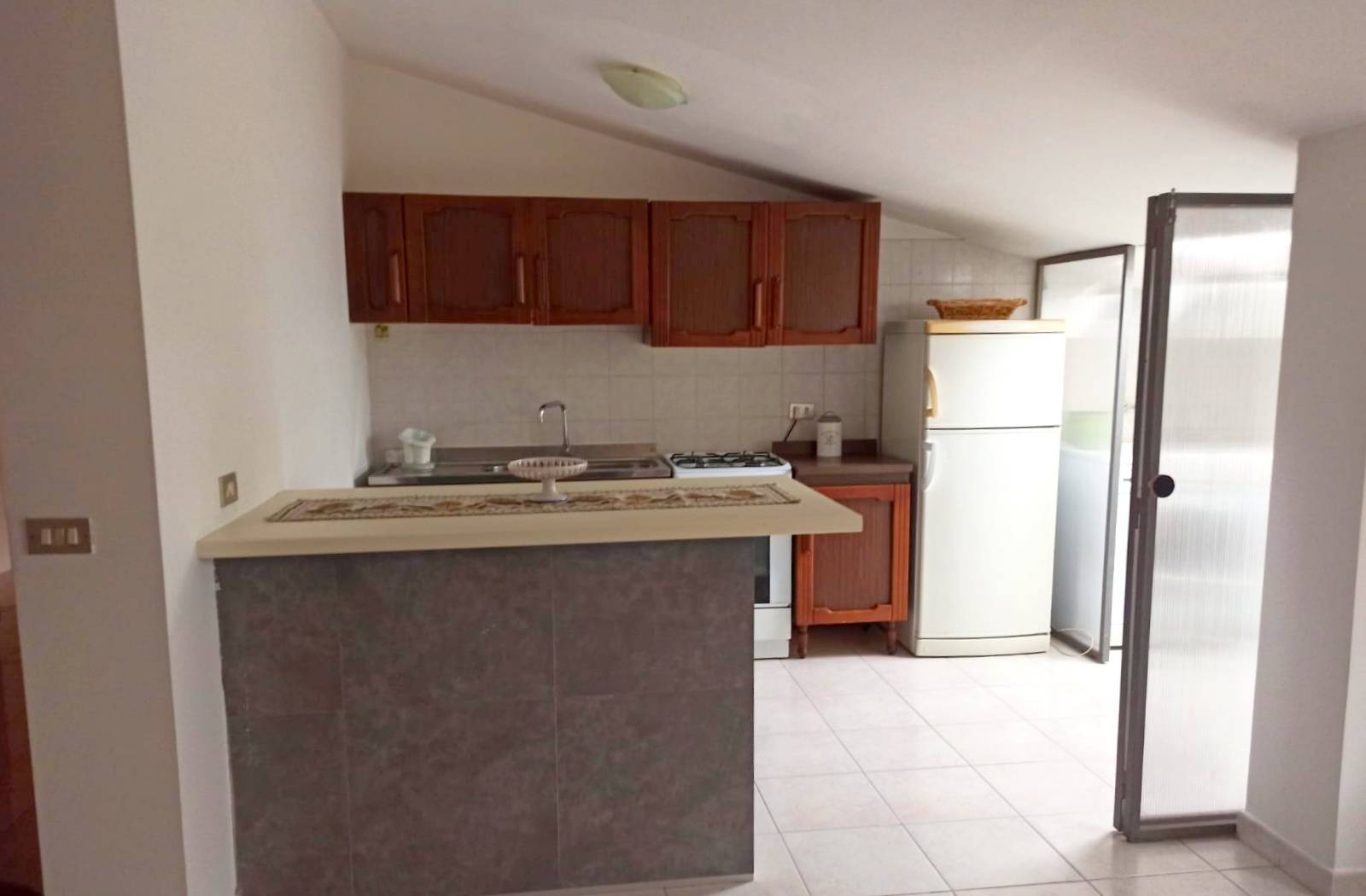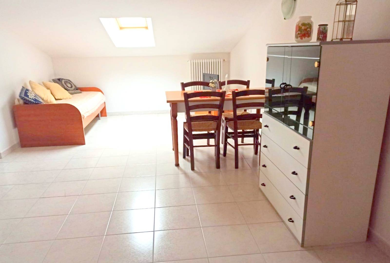 In affitto appartamento mansardato, con superficie di circa 110mMq, posto al quarto piano, servito da ascensore.