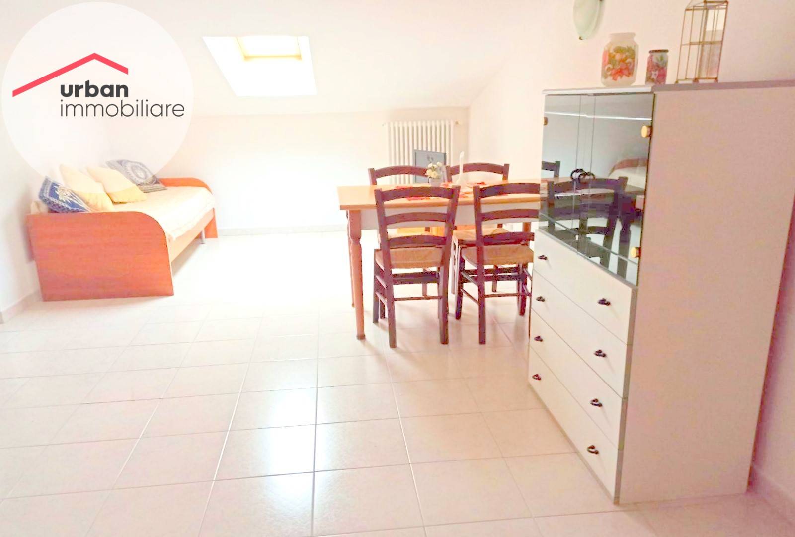 In affitto appartamento mansardato, con superficie di circa 110mMq, posto al quarto piano, servito da ascensore.